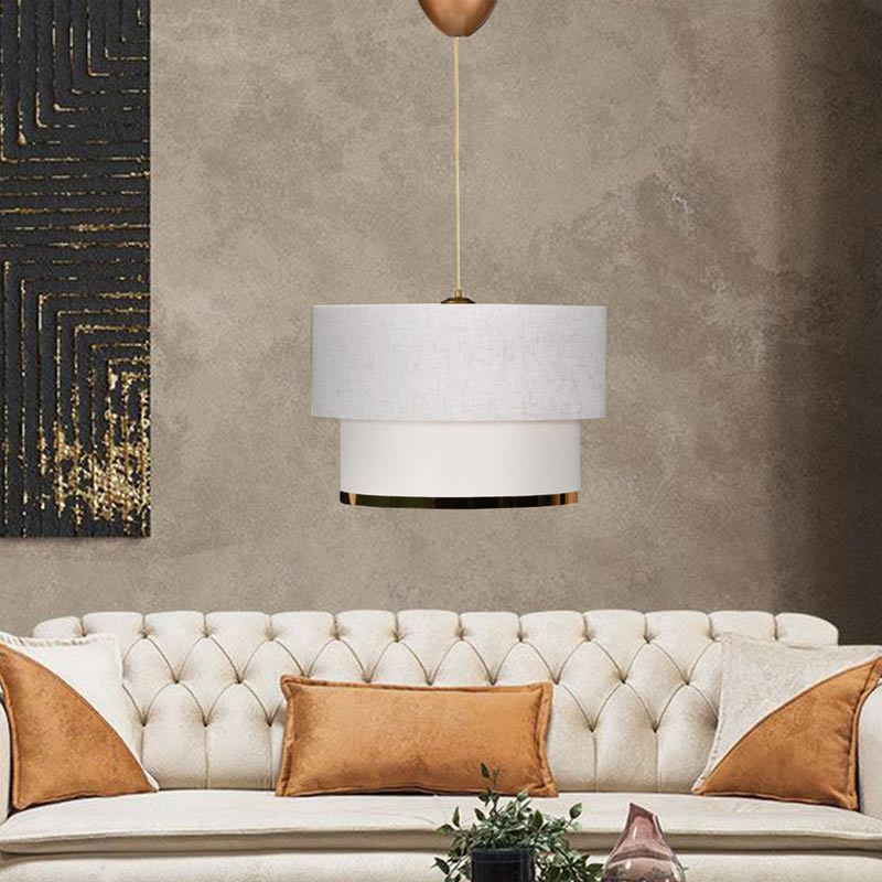 Φωτιστικό οροφής Barnhart Megapap υφασμάτινο μονόφωτο χρώμα λευκό/χρυσό 30x20x70εκ.
