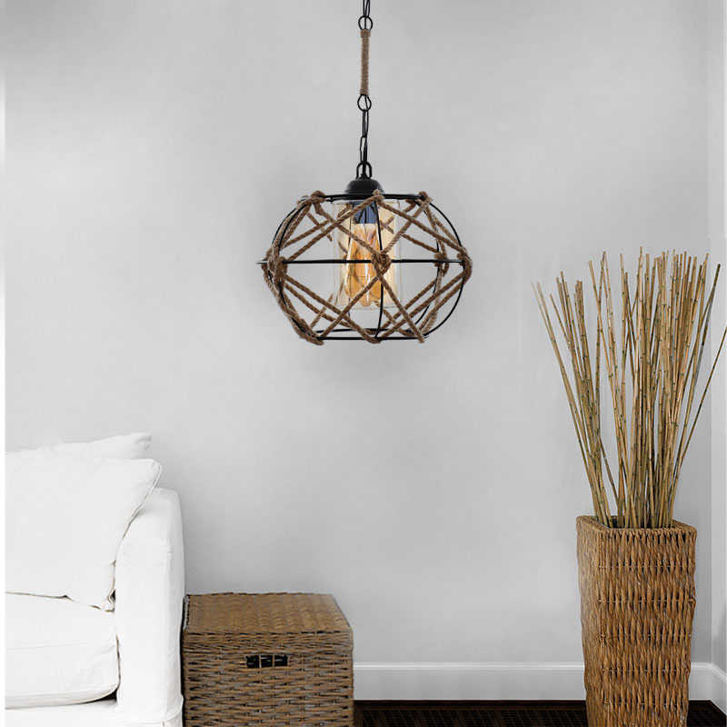 Φωτιστικό οροφής Eileen Megapap E27 μέταλλο/σχοινί μονόφωτο χρώμα μαύρο/καφέ 28x28x68εκ.
