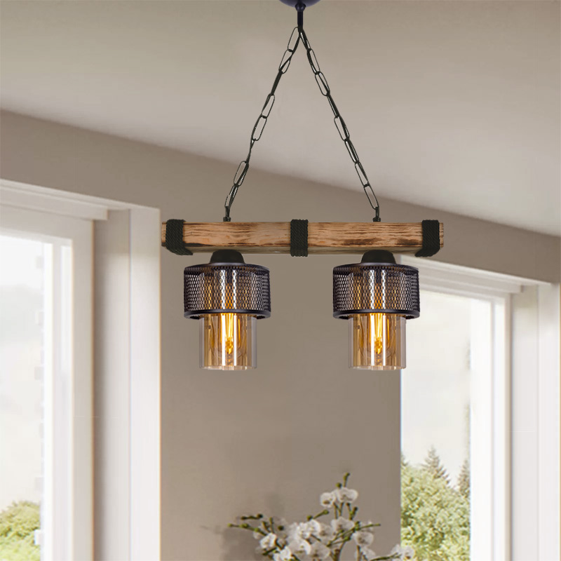 Φωτιστικό οροφής Eliana Megapap E27 ξύλινο/μεταλλικό δίφωτο σε μαύρο/καρυδί 40x15x65εκ.