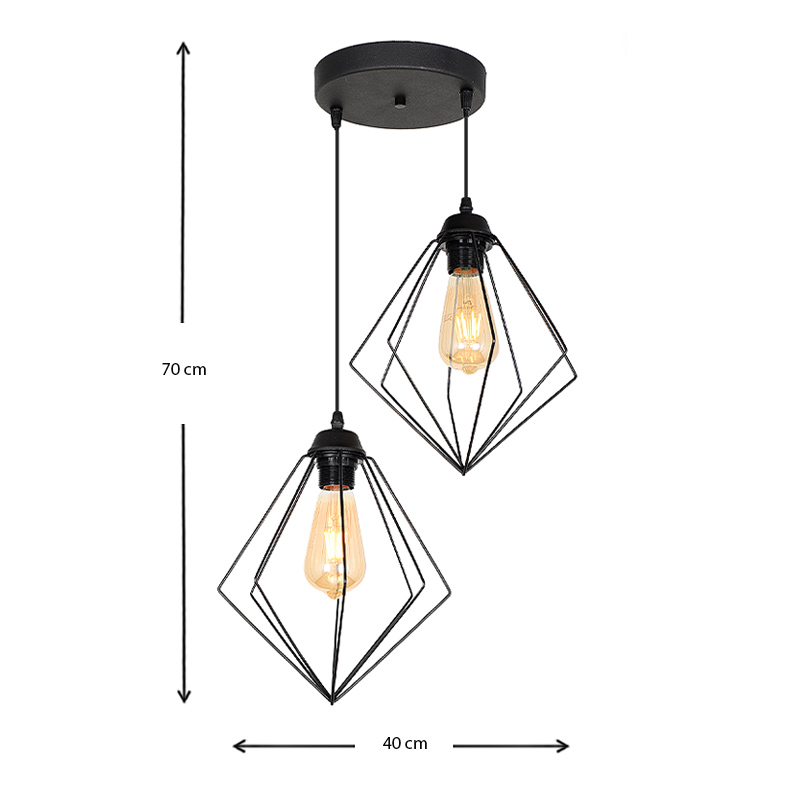 Φωτιστικό οροφής Nura Megapap E27 μεταλλικό δίφωτο χρώμα μαύρο 40x40x70εκ.