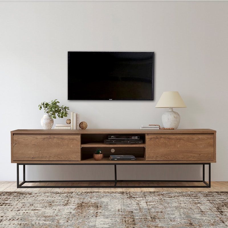 Έπιπλο τηλεόρασης Amedeo Megapap από μελαμίνη χρώμα καρυδί 180x40x50εκ.