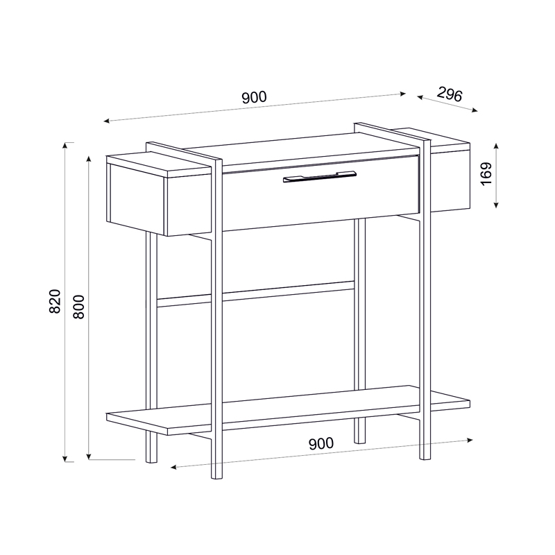 • Διαστάσεις: Μήκος 90 x Βάθος 29,6 x Ύψος 82 εκ.