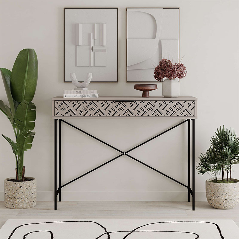 Κονσόλα Heaton Megapap μεταλλική – μελαμίνης χρώμα ανοιχτή μόκα 110×35,6×90εκ.