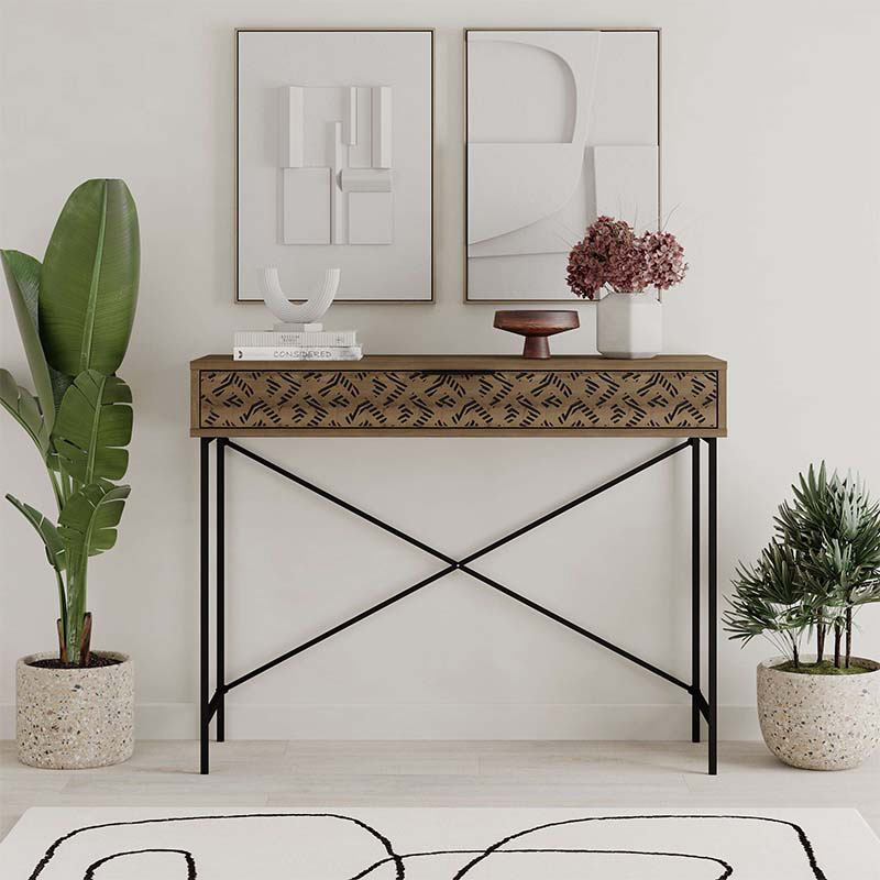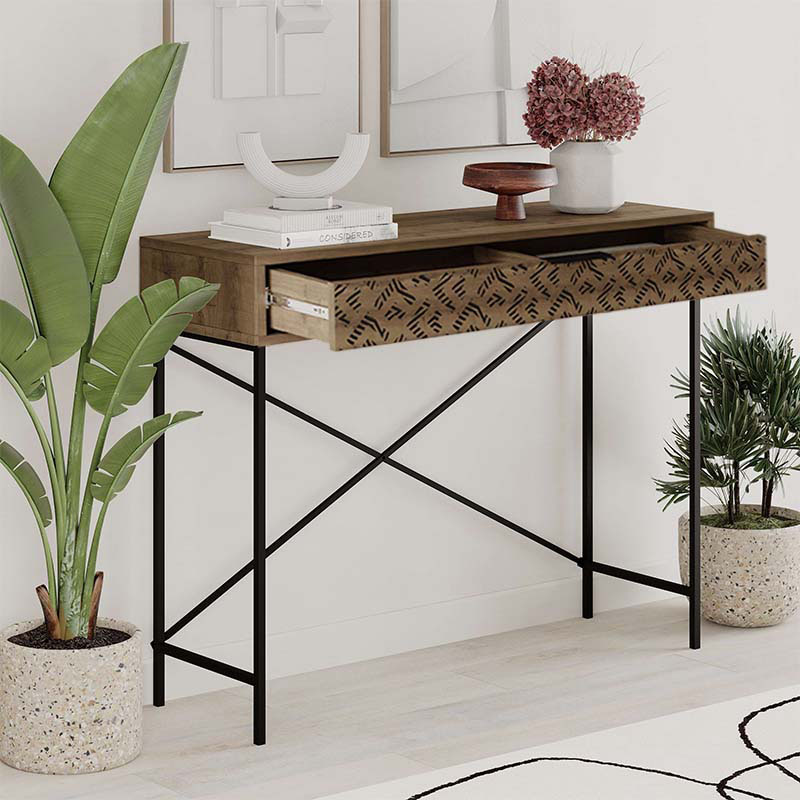 Κονσόλα Heaton Megapap μεταλλική – μελαμίνης χρώμα ανοιχτό καφέ 110×35,6×90εκ.