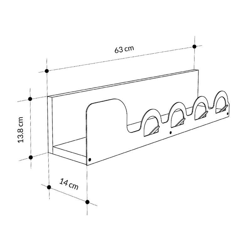 • Διαστάσεις: Μήκος 63 x Βάθος 14 x Ύψος 14 εκ.