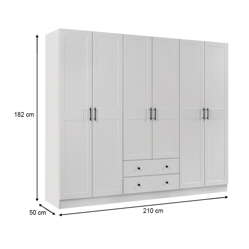Ντουλάπα ρούχων Jenna Megapap εξάφυλλη χρώμα λευκό 210x50x182εκ.