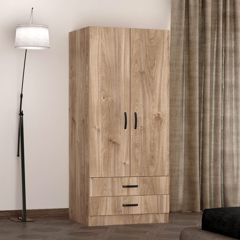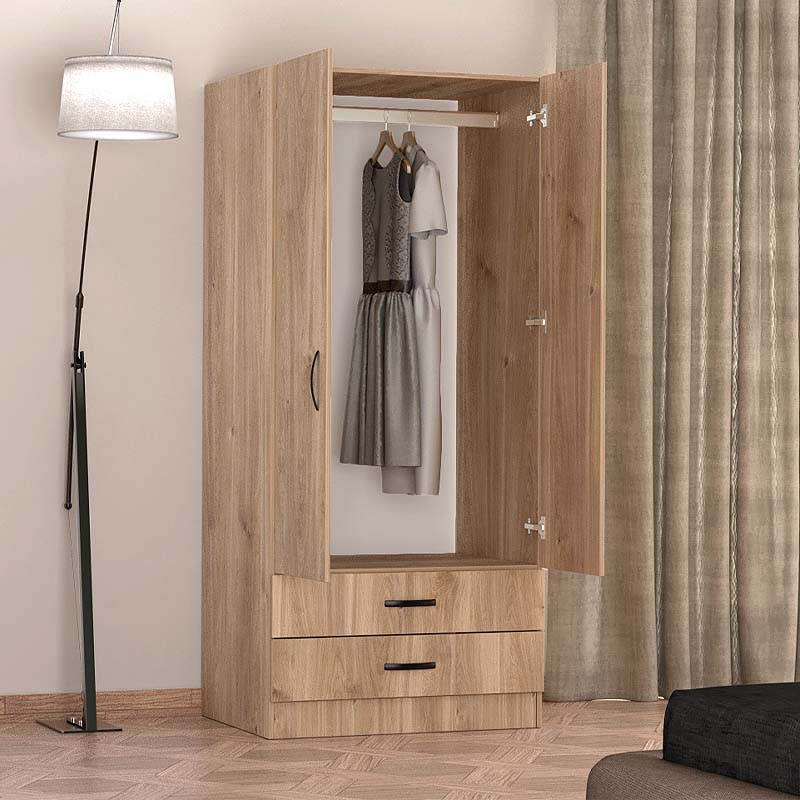 Ντουλάπα ρούχων Regina Megapap δίφυλλη από μελαμίνη χρώμα honey oak 80×51,5×181εκ.