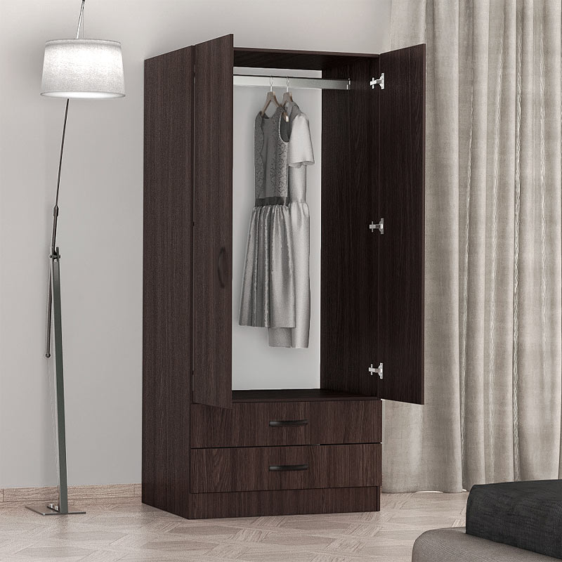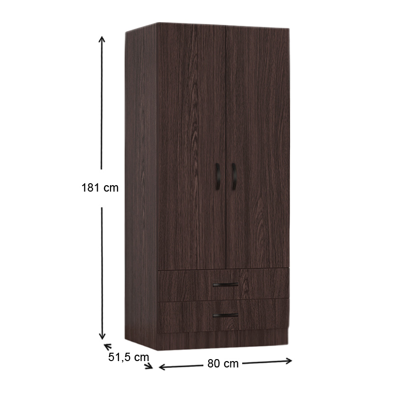 Ντουλάπα ρούχων Regina Megapap δίφυλλη από μελαμίνη χρώμα wenge 80×51,5×181εκ.