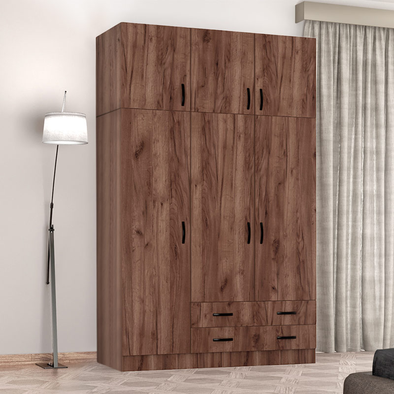 - Μια κεντρική διπλή ντουλάπα, στο εσωτερικό της φέρει μια μεταλλική βέργα για κρεμάστρες. Στο κάτω μέρος φέρει δύο πρακτικά συρόμενα συρτάρια.