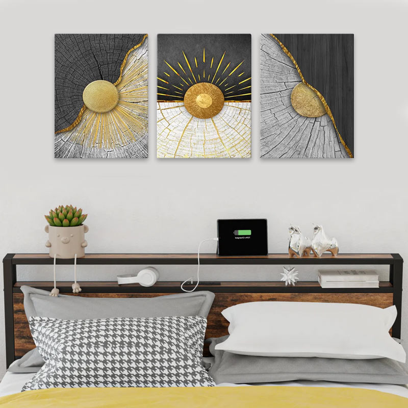 Πίνακας σε καμβά “Golden Sun” Megapap τρίπτυχος ψηφιακής εκτύπωσης 126x55x3εκ.