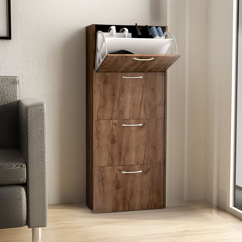 Παπουτσοθήκη μελαμίνης Gino Megapap 24 ζευγών χρώμα ανοιχτό καρυδί 59x25x165εκ.