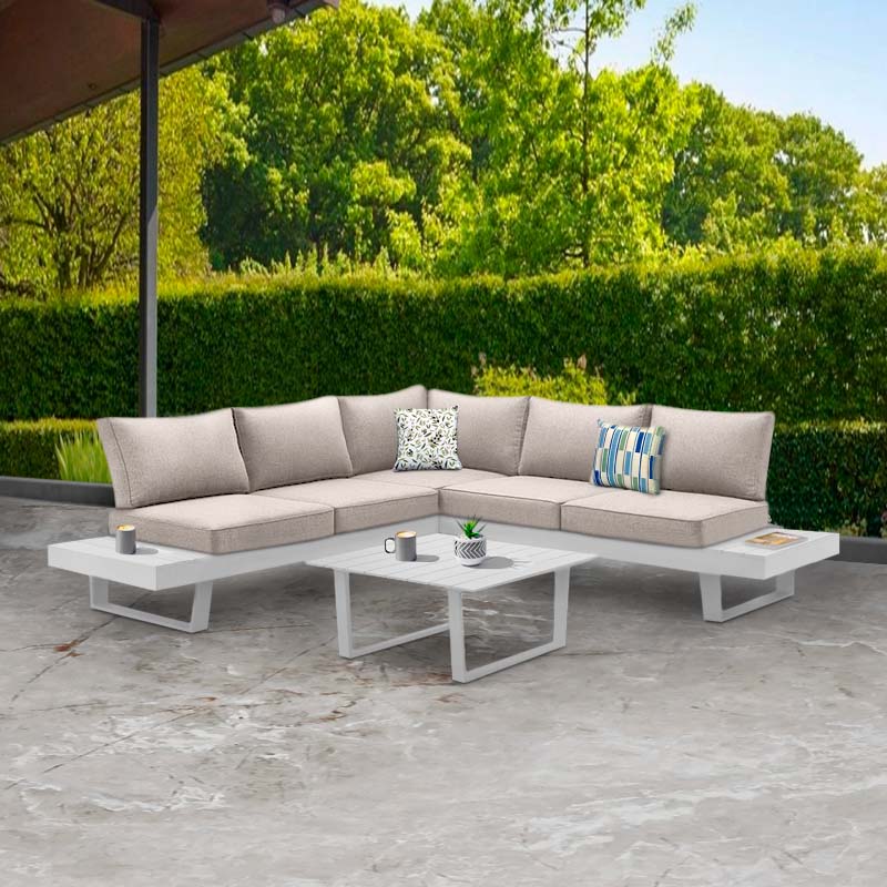 Σαλόνι κήπου γωνιακό Lyra Megapap σετ 3 τμχ μέταλλο – ξύλο χρώμα λευκό