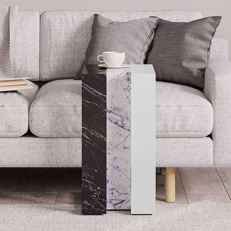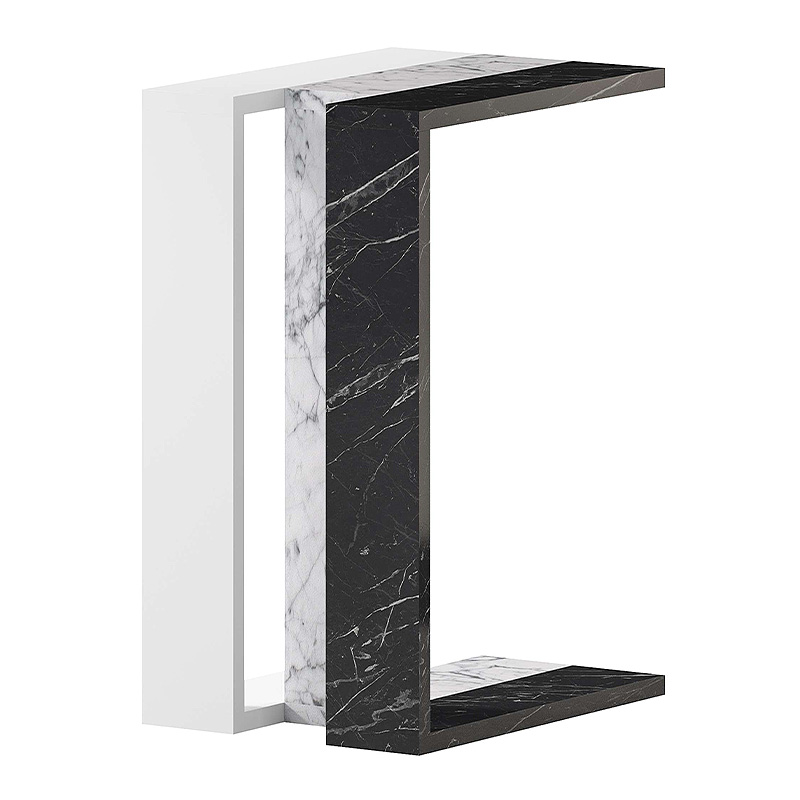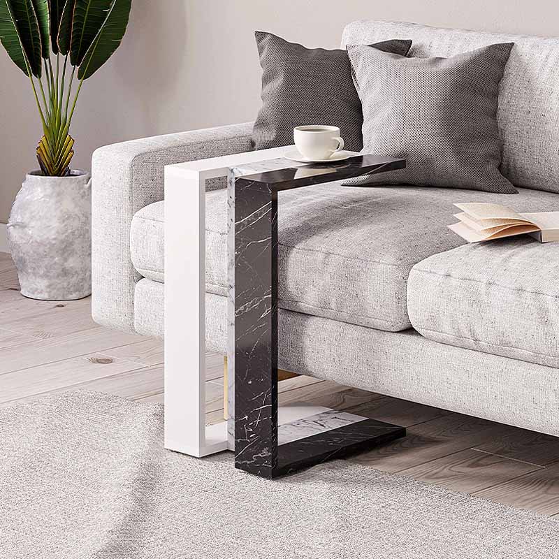 Τραπεζάκι βοηθητικό Muju Megapap μελαμίνης χρώμα μαύρο – λευκό εφέ μαρμάρου/λευκό 30x40x57εκ.